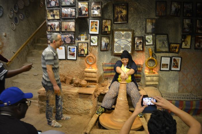 After the Sultana removed her veil, she drank some water. Soon after, her serving maids brought in a low table.